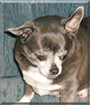 Dearest Boots, you are precious indeed! What an adorable mature Chihuahua guy you are over in Windsor, not far away at all! You have quite a story to tell, don't you. You came to your dear Furrrever Family all the way from Florida, to your dear person's Mom and then to your person him/herself after Mom passed away. We're so sorry you lost your loving and beloved Mom, but your person loves you and treasures you just as much. You have a delightful personality, don't you. Kids are a bit too energetic for you, but you do fine with adults. You love walks and car rides and, most of all, food. You live with your sister doggie, and you both enjoy your toys and treats and dog beds. You both go to the salon for nail trims and baths and summer hair cuts. You all love each other very much, don't you. What a wonderful love-filled home you share!