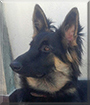 Dearest Blacky, you are gorgeous! What a beautiful German Shepherd Dog you are, with that thick, fluffy, colorful fur that looks so soft, and that sweet face with those perky fluffy ears and lovely big brown eyes. And what a delightful personality you have! You may be all grown up, a year and three months old, but you're still a puppy to your dear person in terms of energy and personality. You talk when you have something important to say, such as when you want a treat or a walk or to play. You and your dear person love each other very much, don't you. You are both looking forward to many years ahead together. What a love-filled home you share!