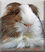 Dearest Bella, what a sweet Silkie Guinea Pig you are, indeed! You're absolutely adorable with that long, colorful coat and that sweet face with the cute pink nose and mouth and lovely big dark eyes. You have quite the delightful personality, too. You're sweet and loving and full of character. You enjoy squeaking almost like you're singing. You hold your head up high for photos, as if you know how beautiful you are. You take good care of your sister Mystery by grooming her. You're friends with the family dog and will sit by her. You love a good cuddle and your fleece blanket. You love to be petted and adored by visitors and want to come out of your cage to visit with them. You all love each other very much, don't you. What a wonderful love-filled home you share!