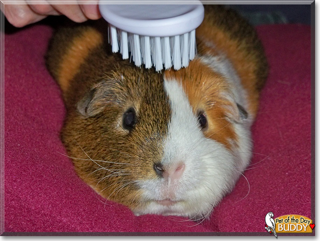 Congratulations, darling Buddy, on being chosen Pet of the Day! We hope you and your dear Herbie and CavyMom and all your family and friends are enjoying a fine celebration, full of fun and lovies and all your favorite games and treats, with a special serving of cucumbers, green leaf lettuce, Oxbow food/hay/Vitamin C tablets, spinach, and carrots!