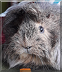Dearest Leilani, you are adorable! What a beautiful Longhair Guinea Pig you are, with that long, LOOONG grey hair on your body! And what a sweet face you have, with shorter hair and lovely big dark eyes. What a great story you have to tell! You're part of a whole colony of piggies, all adopted from Freshfields Animal Rescue and all related! You and Dita were adopted as friends for Nacho. Sadly, Nacho went to the Rainbow Bridge, and later Spike joined the family. Dita and Spike are two of your babies, and the third one went to live with another family. You're all full of energy and make your dear people smile with your antics. You're the noisiest piggies they've ever had, and you recognize Mom's footsteps. You all shout louder when you hear her, to remind her that feeding time is (always) here! You all love each other very much, don't you. What a wonderful love-filled home you share!