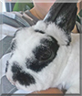 We hear you're not a fan of the camera, Sternchen, so major thanks for posing so patiently for the camera so that all the world can see what a beautiful Dwarf bunny you are! Your moo cow themed, black and white coat is so lovely, looks so soft! All of that time and attention you put into keeping it so clean sure pays off! And after reading your proud human's love filled tribute it's clear you're just as beautiful in heart and personality as you are in looks!:) And what a perfect name your human chose for you, Sternchen, for in looks and spirit you truly shine brightly!