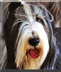Dearest Patrick, what an absolutely precious fellow you are! To begin with, you're so good-looking, with that long, colorful fur framing your sweet face which looks like you're smiling (and you probably are!). And you have the most delightful personality! Your dear person says you're ".. one of the sweetest dogs I've ever owned." You're a Bearded Collie who, like the Lhasa Apso you think you are, can make yourself small enough to fit in anyone's lap.