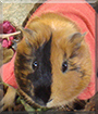 Dearest Romeo, you are adorable! What a beautiful Guinea Pig you are, with that two-tone fur that's so pretty and looks so soft, and that sweet face that's dark on one side and gold on the other. You're so cute dressed up in your little jackets for when you go outside with your dear person! You have the most delightful personality. You're very independent, and you love to explore. You decide when it's time for a cuddle! You know a good trick: your person puts a lettuce leaf on your head, and you reach up and take it off to eat. You and he/she love each other very much, don't you. What a wonderful love-filled home you share!