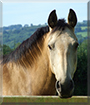 Dearest Rocky, a.k.a Roan Rock, what a beautiful Dun Irish Sports Horse you are! Your main coat color is gorgeous, and the dark mane and tail and boots bring out that beauty even more vividly. Thank you for sharing those great photos with us. They're all terrific, and I love seeing you gazing straight out at me! You have the most delightful personality, too. You're very friendly and love company, but you also like to remind your two mare companions just who is boss!