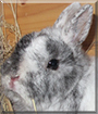 What an adorable bunny you are! I like your grey and white fur, your dark eyes and cute small ears! I would be glad to gently pet you, because your fur looks very soft to pet!