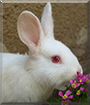 This is one of my baby bunnies, he is the white one, and his name is Dixie. He is just a few months old, and still growing. Both are boys the same age, so they can be friends with worrying about unexpected babies! Dixie is such a sweet rabbit, and is rather calm, the opposite of his brother. He's always standing in his place, and seems shy and reserved, never doing anything too crazy. He likes to be petted. He's also very thoughtful with his brother, cleaning him when he can, or offering himself as a replacement for a pillow.