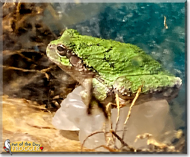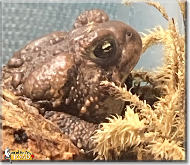 Dearest Frogger and Toad, what an adorable pair you are indeed, the Gray Tree Frog and the Common Toad! You are both absolutely stunning in those great photos, and thank you for sharing them with us. You have the most delightful personalities, too! Frog, yours is relaxed and you can be calm. You're a bit shy of your dear person, but you respond to her/his voice and you're curious about her/his activities. Toad, you're also calm, and you like to do a staring contest with her, which you always win! She says you're fascinating pets, the cutest frog and toad ever! You all love each other very much, don't you. What a wonderful love-filled home you share!