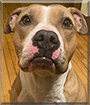 Oh! What a handsome, most precious Pittie boy you are, Bumper! Your photos...total meltdown! Your sweet expression, your love filled brown eyes warm me to the core! You're a natural for the camera, sweetheart! What I wouldn't give to plant a BIG boop on your soft, warm and wet nose, Bumper, hehe! Yes indeed! In looks and in heart you personify all that we know to be the true nature of the Pitty: smart and playful; loyal and loving; cuddles craving mush buckets; gentle giants!