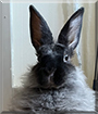 Dearest Aza, a.k.a. Aza Dean Javian Beezlebub Barskey, what an adorable Dwarf Angora mix Rabbit you are! You are absolutely stunning with that long, fluffy grey fur and those long perky ears and that sweet face with those lovely big brown eyes. You're so cute in all those great photos that show you off in all your beauty. You have such a delightful personality, too! You're just five months old, full of energy, and you make your dear people smile with your antics. You love to eat a snack and then get so excited you do back-flips on the couch. You also enjoy sitting in front of the fan enjoying the wind blowing through that luxurious fur. Sometimes you settle down enough to snuggle with someone who gives you an ear-scratch. Every night you snuggle with your best friend, the stuffed flamingo Fling or Mr. Flingo.You enjoy Lady Gaga, piles of sticks, and pooping on the floor instead of in your litter box (I know a cat like that!). You and your dear person love each other very much, don't you. What a wonderful love-filled home you share!
