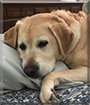 Dearest Lucca, you are adorable and precious! What a gorgeous Labby guy you are, with that beautiful "yellow" fur coat that looks so soft and that sweet face with the floppy ears and lovely big dark eyes. You're so cute in those great photos, and thanks for sharing them with us. And what an inspiring story you have to tell! You came to your dear person as a career-change Guide Dog for the Blind, when you were just fifteen months old. Now you're nine years old, and you two have been together all that time! You're a good watchdog, and you love getting cuddles and belly-rubs. You sleep with her/him each night, and you even have your own dog pillowcase! You love your toys, which you sleep with or on top of. You also like to tunnel under the blankets. You and all your family members love each other very much, don't you. What a wonderful love-filled home you share!