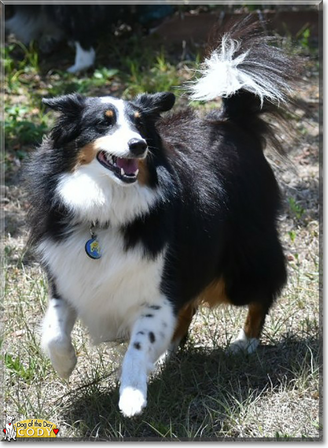 Greetings, Cody! Congratulations on being crowned Dog of the Day, sweetheart!:)What a gorgeous, oh so photogenic Sheltie boy you are, Cody! Your fabulous photos capture your essence, your inner and outer beauty to perfection! And your dear Mom's heartfelt, loving tribute to her best baby boy has melted my heart into a puddle of pure mush!Beautiful and vibrant, smart and athletic, packed with personality and a heart as big as they come, you're everything a human could ever hope for in a furry pack member and then some; perfection on 4 paws! More than a pet you're family, Cody; your Mom's heart dog and soulmate!How blessed she is, having been paw selected by you to be hers; her best friend and protector for life, and what a perfect pairing it turned out to be! You, Cody, are living, loving proof of the priceless rewards of rescue! Many here can relate when she says you kids are her world, and what a wonderful world it is, for her and for you...all! The comfort and joy, the love and laughter you, sister Willow and brother Artie bring to her life is truly a priceless gift! Thanks for the BIG smiles, Cody! Meeting you today, seeing your heart-melting photos and learning of the very special bond you, your siblings and your Mom share has been such a treat! I hope you were all treated to a very special, fun filled and action packed day of celebration...running and playing (agility anyone? hehe); feasting on your fave foods and treats; spending special time with your Mom; receiving countless cuddles, kisses...and butt skriteches! Much love, hugs and smooches to you, beautiful Cody, our very special and most deserving Dog of the Day, EVERY day!!! Love to gorgeous Willow and Artie too!XOXOXO
