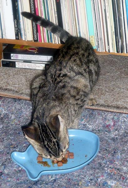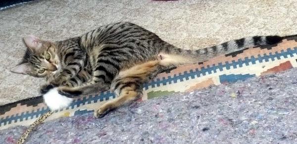 So Kiri now moved in the guest room as we will not get her together with Orion before we know she has a clean bill of health. She ate and she played like crazy- all good signs.