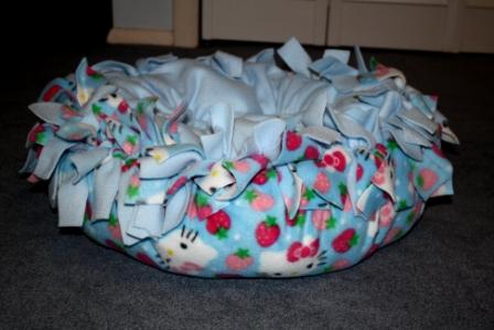 Finally got my fleece bed made. Buddy loves it. I'm going to have to make two more though.