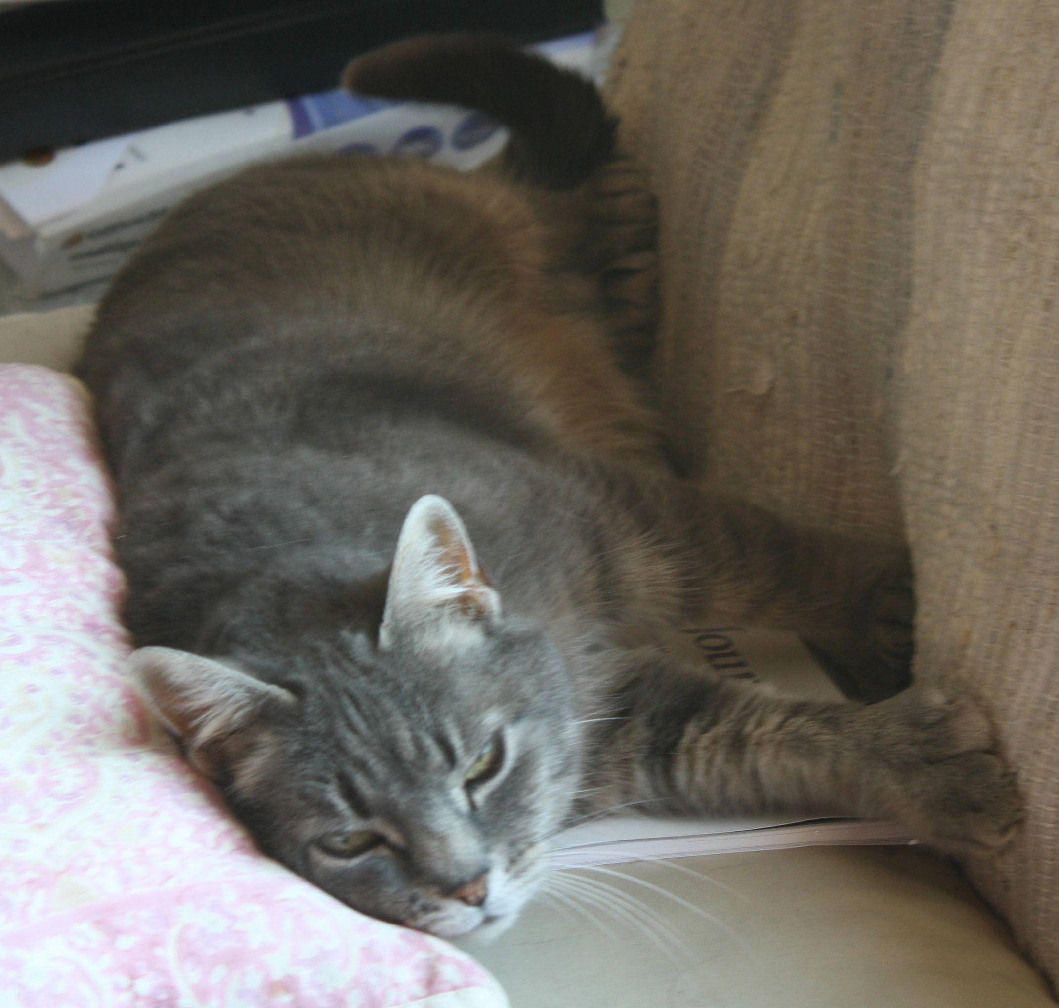 So is the a polydactyl? Looks like it in the first picture, anyway. such a pretty, soft grey gal, here's hoping she makes progress settling in, and that the two resident felines agree.