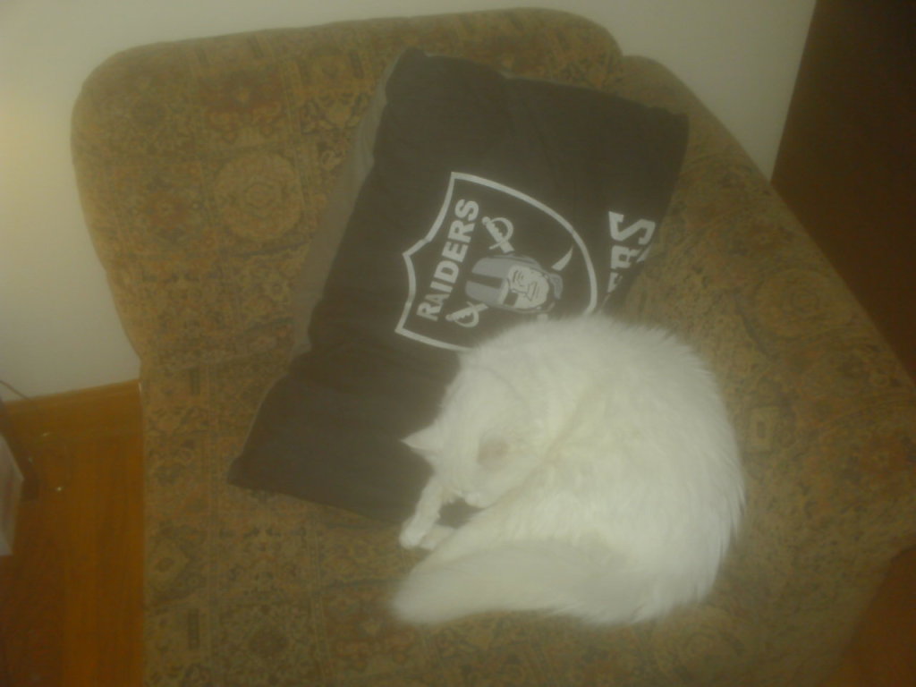 It finally dawned on me what has been going on with her: The reason she wasn't eating all weekend was because that WASN'T her, it was her Avatar standing in for her while she was off at the Superbowl. (She hasn't got it trained to eat yet; the simulacra of the other cats eat just like their Original Models.)