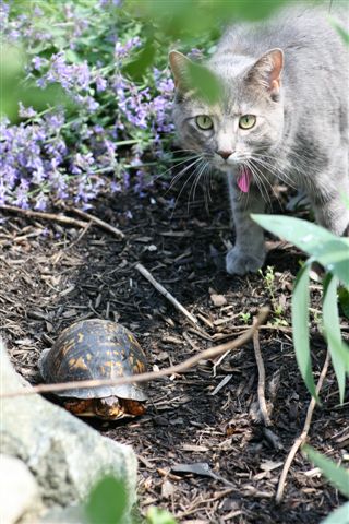 They are "neighbors". We live at the edge of the state forest, and, as a co-worker has put it, it's like living in a zoo. We never know who's going to show up in the gardens behind our house! We love it! Otis and Odessa are the start of a family of Eastern Box Turtles.