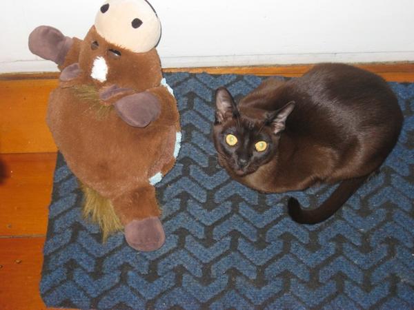 Of course they are innocent!!! I'm sure that toy that was stuck in the door was put there by some evil cat trying to cause trouble for these beauties. :D :love: (or maybe by Santa who was testing the hole to see how big a gift he could bring through it at Christmas for them) ;)