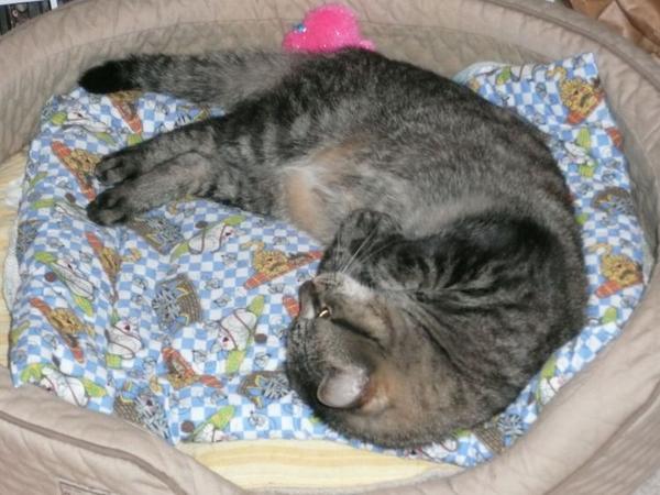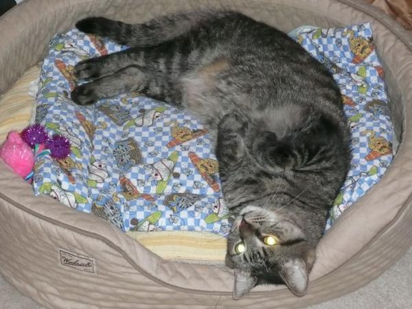 And here are some pictures of Bobby enjoying his nice new hand-made cushion!
