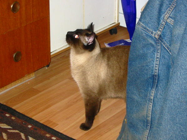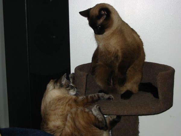 A little closer. She actually reached out and touched his ear with a paw just before I snapped the pic.