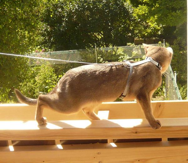 But today I decided he has to check out what has been done so far. Tomorrow I hope the painter and the cat netting guy will come and then we can begin to put the furniture back on. As Orion tolerates his nice blue leash purrfectly (and he did so from the very first second) I took him outside even as the netting was not on: