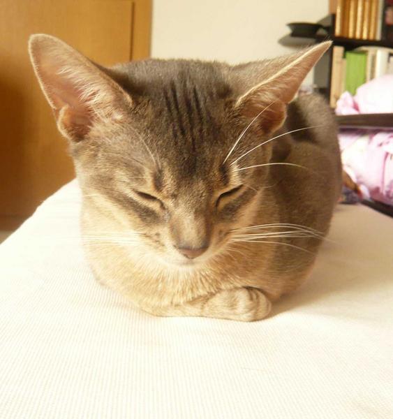 Here he is in one of the rare moments when he is quiet ;) looking like a kitty out of a Japanese manga.
