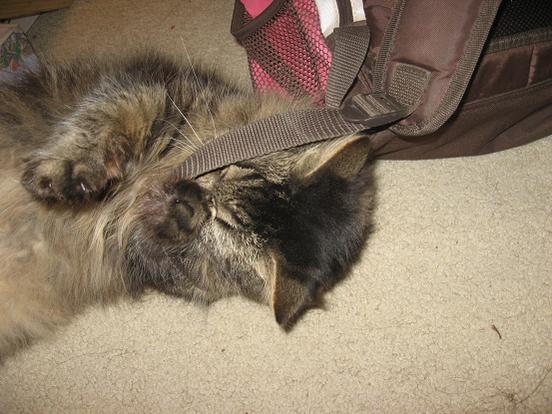 Having fun playing with my backpack