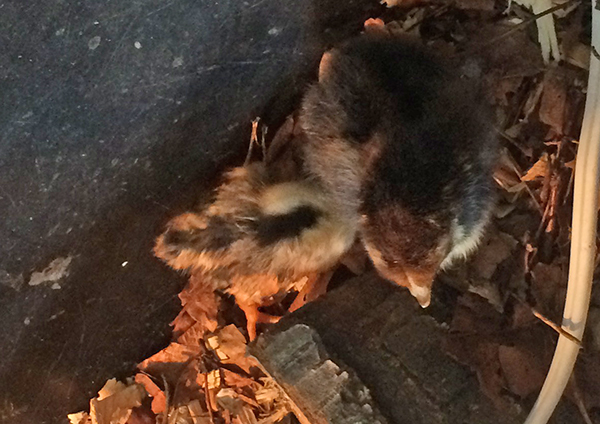 A Rapa Nui chick and a Freedom ranger chick I think: