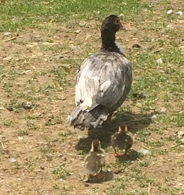 Mama Cardamom - Muscovy Duck and her two ducklings:
