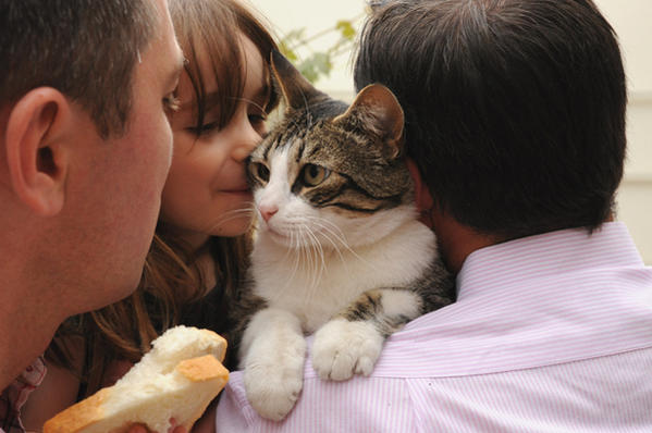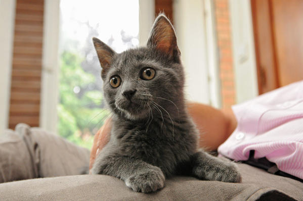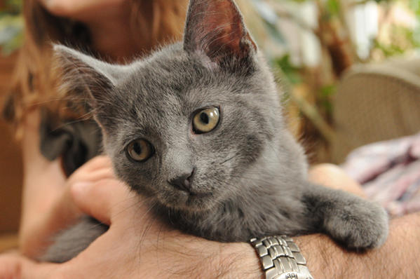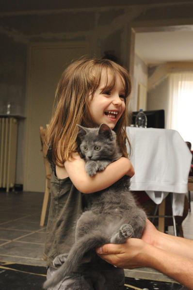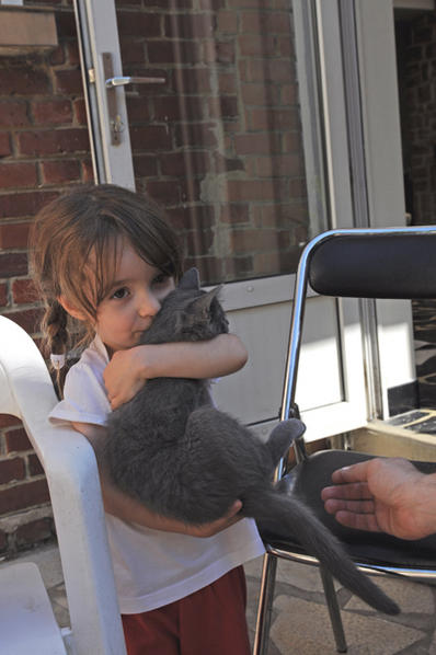We recently visited some friends who have adopted a kitten. He's name is Muse and he is partly Chartreux. My daughter loved him! She loves all cats, but this one was her size and she could hold him, so she was so happy giving kisses and cuddles :D