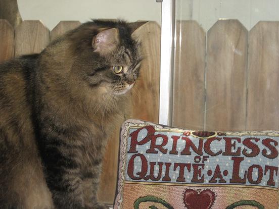 Dear Princess and Duchess, I am just here looking at these photos of beautiful YOU again! Oh, Princess, please please don't go outside alone! Are you able to enjoy the outdoors through the window, maybe? I would not want anything to happen to you. Gentle petting and hugs to you both.