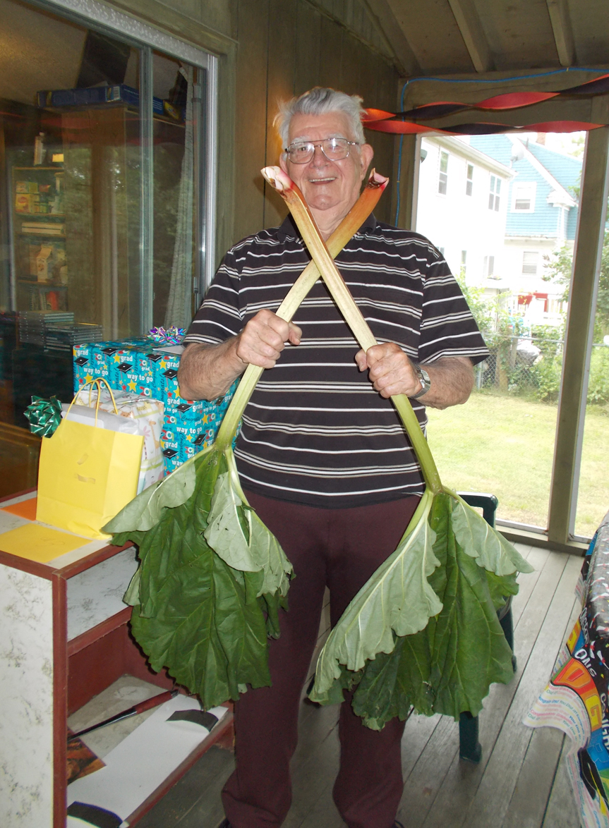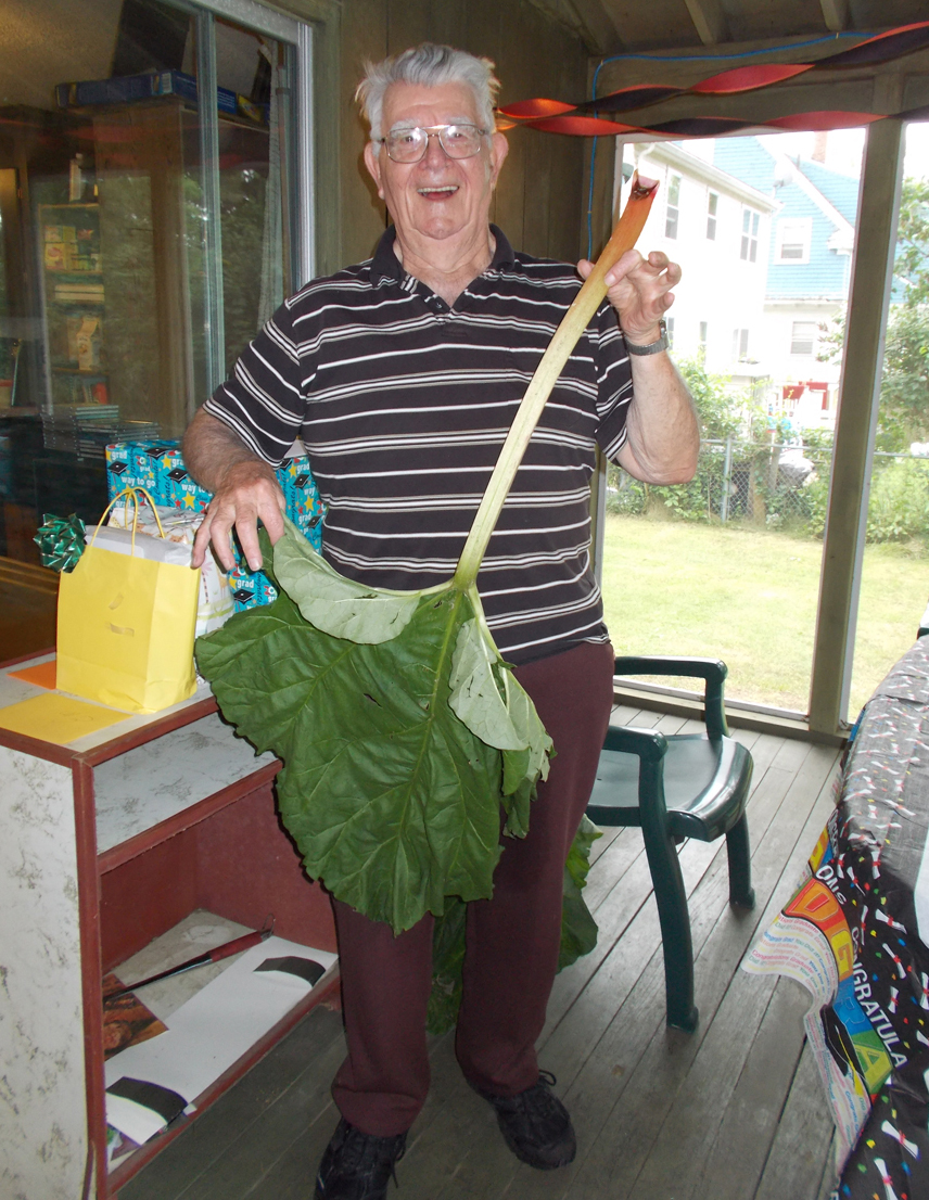 By the way - hey, Lady's Human, Dad wants to know if your rhubarb is growing this well ....