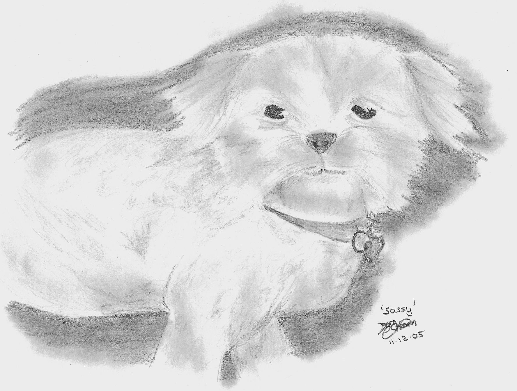 She was really really hard, all that curly fur and white colour, but i gave it my best shot. I put a dark background on her to make the white stand out. However, i love a challenge, so thanks!!! Give Sassy hugs from me!!!:)