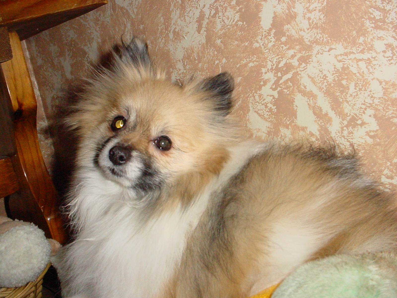 Boomer is a Parti Pomeranian who turned 8 years Dec 2005. Boomer is majorly reserved compared to Tristan and takes a while to warm up to new people. Once he’s used to you though, he’ll follow you everywhere.