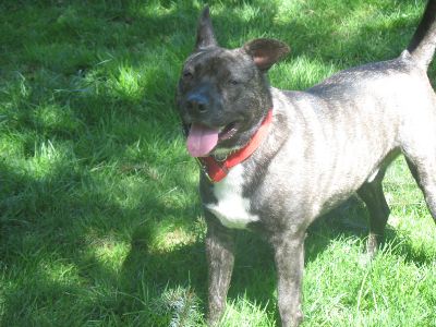 I need help finding what breed my dog Buddy is. We are pretty sure he has Pittie and/or Cattle Dog in him but we are not sure. He is brindle and I have some pictures you can look at to help you decide what breeds you think he is, thanks!![]()
