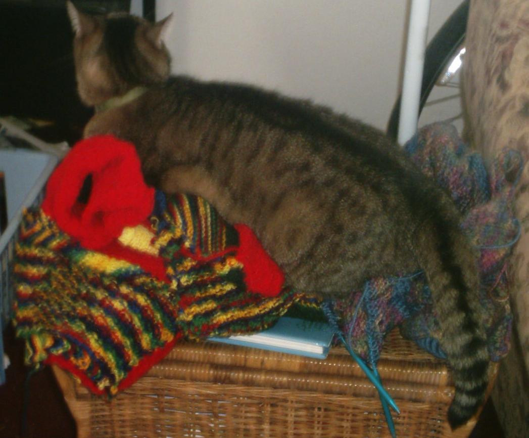 And a couple of nights ago, he decided that I spent too much time knitting. I'm making these blankets for Project Linus , but did he listen? No!![]()