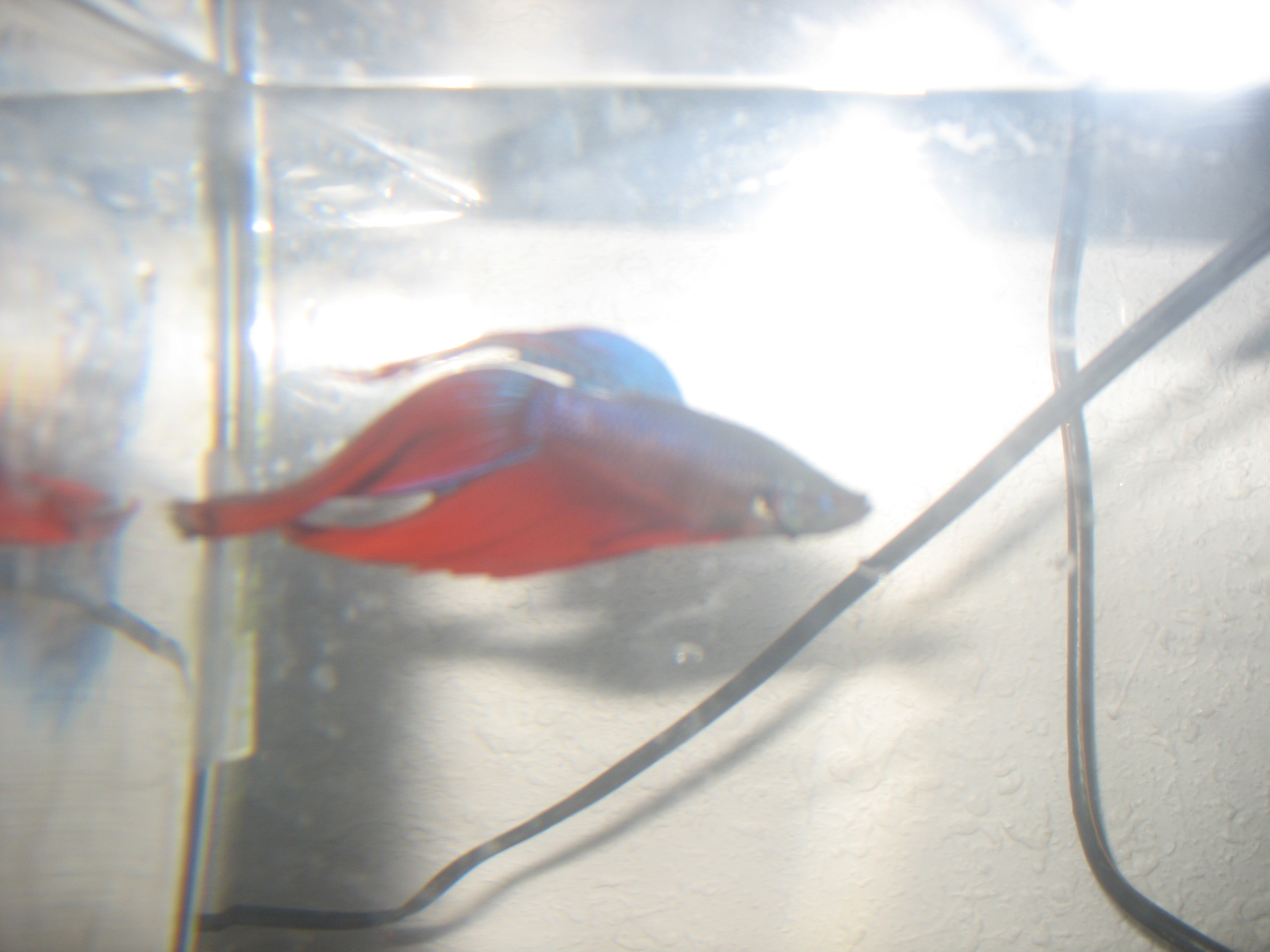 Here's my new Betta! My first in a very looong time. My dad brought me to Fairwood Pet Centre to get a new filter for the Betta tank, we couldn't find a filter though, so we 're going to get a filter from Petco sometime this week. I picked out one that flared when I pointed at him and had full fins. I haven't thought of a name for him yet, though! Can you give me some suggestions?
