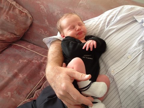 He's absolutely beautiful! Is that his dad holding him in the last picture? I love that picture he looks so tiny in those arms. "Sigh" Babies are so, so precious!