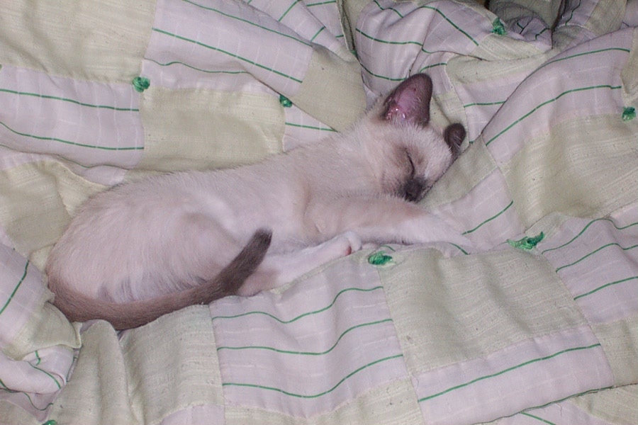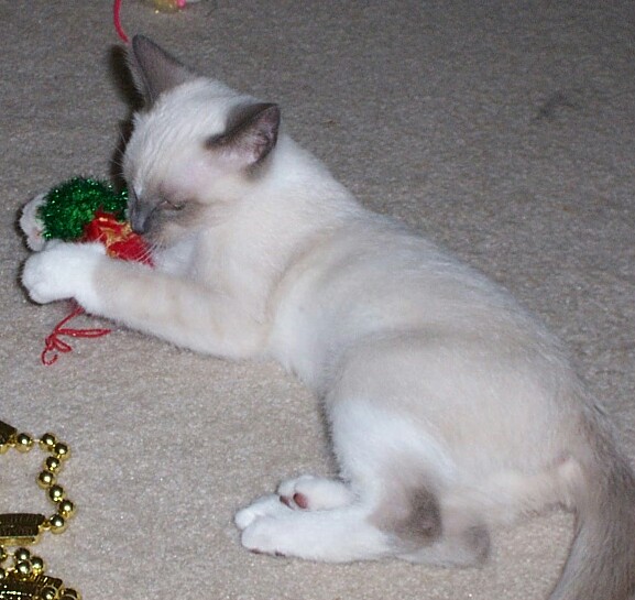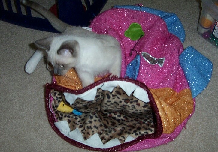 I haven't been able to sit down and actually work on my computer for some time. But I wanted to let everyone know our household just got a little bit bigger. My husband suprised me on my 30th birthday (Ugh!!) with a siamese. She is wonderful. As most of you know I am an huge siamese lover. We had gotten an Chloe around July of 2005 (my first Meezer) And while I was fostering for a humane society I noticed one night while looking for the post for my foster kitty I saw her I fell in love instantly but my husband kept saying no more kitties until you find the foster kitty a good home. So...... I worked really hard on finding the foster kitty a good home. But in the meantime I noticed the kittens post was gone. All upset and a little disappointed I just kept telling myself it wasn't meant to be. So the day of my birthday I came into the house gave Chloe her big hug Tucker his head bumpies and Mopar her usual hug. And if Ally wanted hug also. Then out of the corner of my eye I noticed the cat carrier out. The only thing I could think of was oh no, I forgot a vet appointment!!!! So I went to look into the carrier and there was my little kitten....... The little girl I wanted so badly.