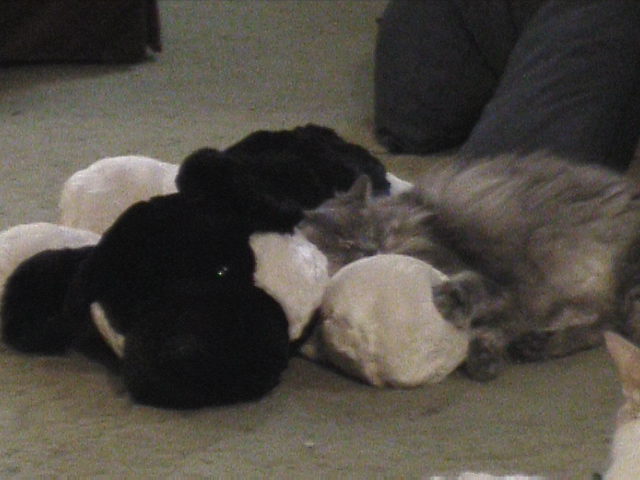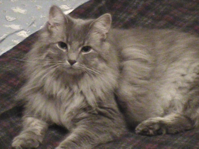 This is our "baby". We brought her into the herd December 28, 2005, she was less than a pound...just look at her now! And her name is Turbo because hubby had to pull her off the turbo charger of his new truck. She ran up under the hood to hide, and there is still a little dried kitten...um...stuff on the charger![]()