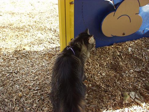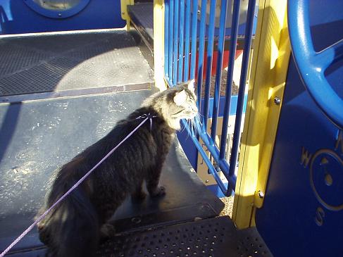 No, it's not a pet park. There were some people there and Princess was afraid of them and all the noises they were making. Some people saw her and said, "Look! A cat! And she has a leash!"