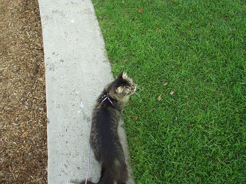 The first time I took her out, she liked it. She didn't just sit there or anything, she just walked without me doing anything! My mom told me that we used to have a cat named Jessie, and my mom put a leash on her and Jessie wouldn't even move.