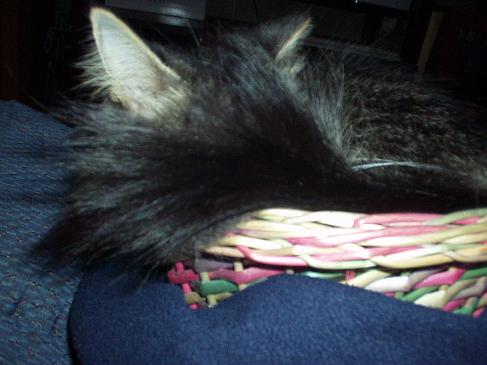 That reminds me so much of that crazy Giz I have. She will find the smallest things to try to get in and curl up in! Don't that amaze you when they DO actually get into it and fall asleep?