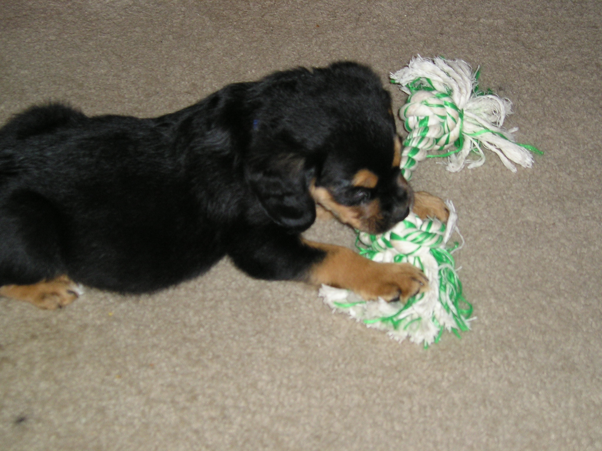 the pic of him with the rope, it happen to be Ginger's rope and he loved it, but we took it and put it up, it was old and frayed and we were afraid to many strings would come off.