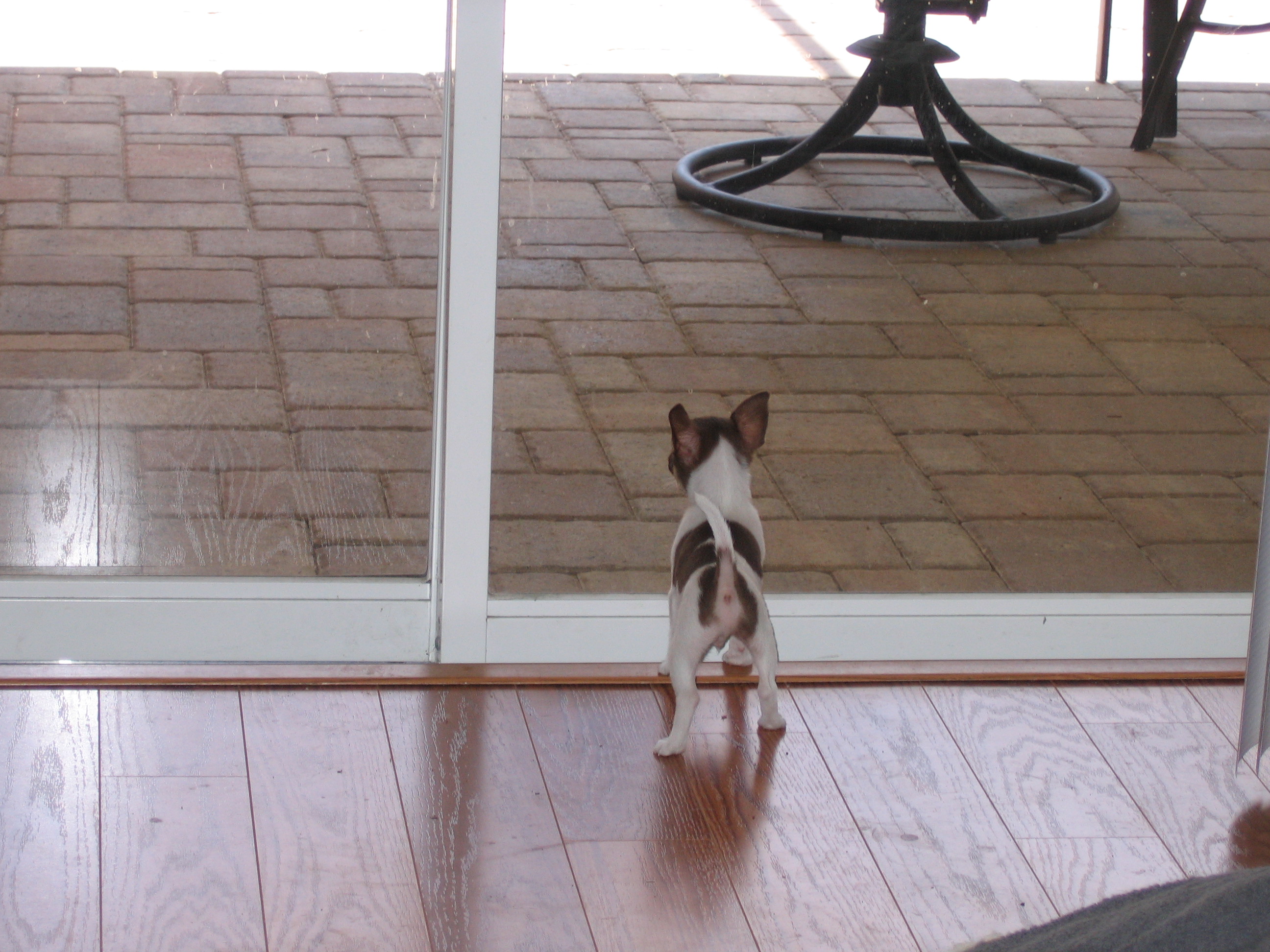 Hello. As a lot of you know we just brought a new addition into our house, Chopper, a very tiny chihuahua who yesterday was 10 weeks old We have had him since Friday. Friday night he slept through the night, he yipped at about 3:30 a.m. twice and went back to sleep until 7 a.m. To our suprise needless to say. Since then it has been a whole other story. He usually whines for the first 10 minutes or so and then settles down but then is back up an hour later or so later, and then I finally just have to put him in our other bathroom. We have tried keeping him awake playing with him and stuff before going to bed to wear him out(without over exhaustion, I so fear hypoglycemia). He is closed in our bathroom at night with his open kennel and access to his food and water (as the vet said night time can be to long without food, he only weighs 1 pound 3 ounces), a litter box(which he is doing very well with ) and a few toys with chew things for teething. Last night it was a little better. We kept him up from 8-10 p.m. with his little chew stick and played with him some, took him out to go potty and put him to bed. He never whined he went straight into his little kennel and went to sleep. He actually slept until 2 a.m. then he started crying (let me tell you I never knew something so small could make so much noise ). I got up and took him outside figuring he wanted to go potty (I want him to know to go out or use the litter box). Well he did both potties and I put him back. He cried for 5 minutes or so and I finally had to move him to our other bathroom because we both had to get up for work at 5. My question is what else can I try. I took a blanket to the breeders house to be put in with his mother for her scent before bringing him home that is in his kennel, he loves our one boxer Duke and wants to always sleep by him(which Duke says no way too, at least right now) so I took one of Dukes blankets and put that in there for his scent. When we put him up to leave I reassure him by going back into the room (while getting ready) so that he never knows when to expect me back, I reassure him with his name and telling him that it is okay but I just do not know what else to do. I cannot allow him to run loose during the night at this time, one he is too small and I worry in the dark he might get stepped on, two he is in the chewing stages, and three he is not completely housebroken yet. So if anyone out there has any suggestions on what to try next please let me know, anything will be greatly appreciated. Tonight I am justing going to probably put him in the other bathroom to start with, maybe if he is not acknowledged at all he will learn he is not getting any attention, even just to go potty outside? Here is a picture attached for anyone who does not know who my little guy is, and thanks to anyone who has suggestions in advance. I have done this before but my Duke was a God Send. He never ever cried, not even his first night away from his siblings and his mommy so I am totally new at the crying part Traci