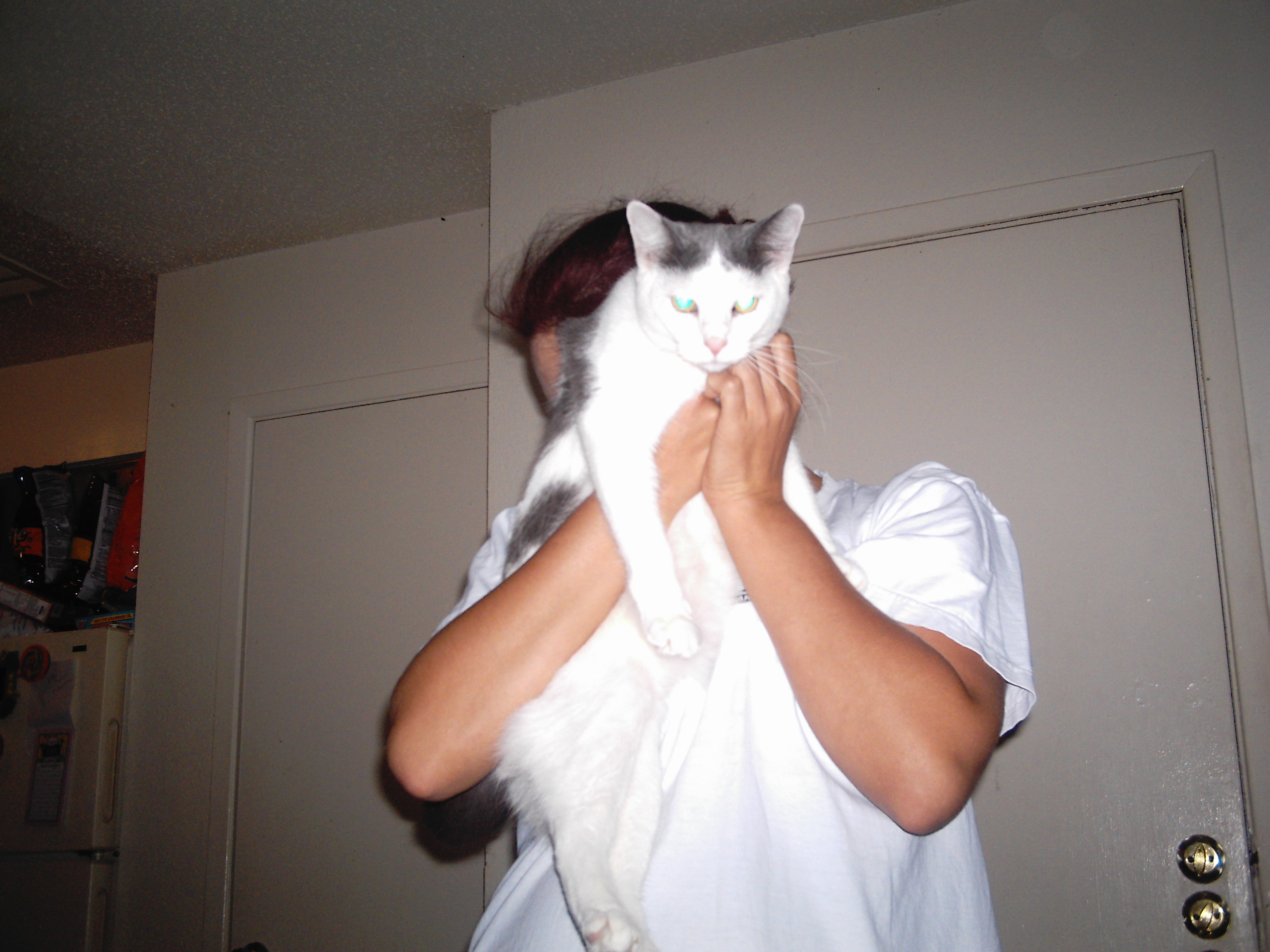 Your cats and kittens sure are cutie pies.Are these the kittens that your husband just brought home? If so they look a lot larger than how you described them. They look like will be able to eat solid food and drink wateron their own. You could name the orange and white one Spitfire,Fireball, or Flame.LOL
