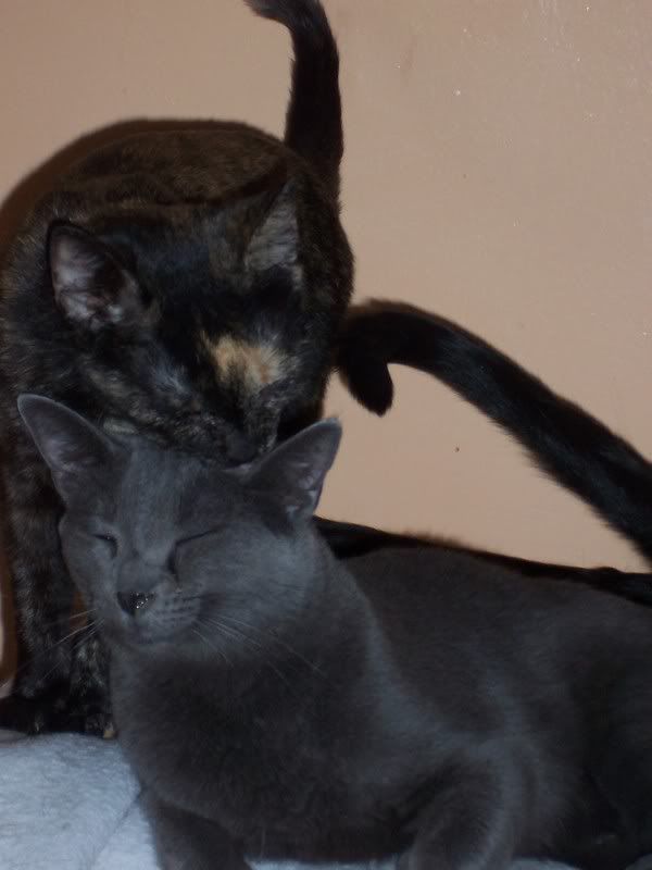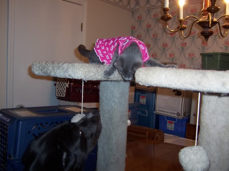 Here she is all dressed up in her dress giving her new sis, Purrty, a big hug!!!!