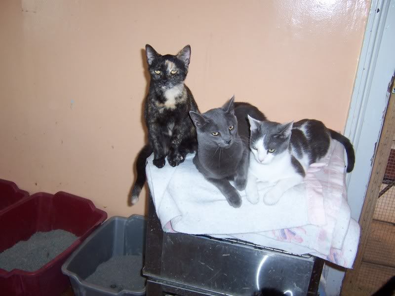 But back to the reason I am posting in the first place.... meeting Lisa. Grayble had a slight URI when she came home so the day she was due her first shots she got meds instead for her cold. That is the first day I met Lisa. She was working at the shelter. I told her that everyone missed her. She said she misses everyone too but she is soooo busy at the shelter that she doesn't have time to get online much but wishes she did. The second time I took Grayble was to get her shots since she was well. They had rearranged some and I saw three big rooms filled with cats looking for a home. Of course one caught my eye (a gray and white boy) and I had to go pet him and the rest of the gang. I didn't expect what I got when I went into the room of about 30 or so cats. The second I went in the door I was literally covered with cats, climbing all over me, all wanting my attention. It was so sad that all these friendly beautiful cats were so scarved for any second of attention they could get and were constantly overlooked because they were adults. All they want is for their very own person to love them. I swear if I didn't already have over my limit I would have taken a car load home with me. I felt so sorry for them. I decided next time I would come and take some pics of them. So today I had to bring Grayble back and I took pics. As I said they are all beautiful friendly cats with great personalities that are jsut dying for some attention. I walked in the room today and was immediately covered in cats again. It was hard to take pics because they were on top of me at my feet, in my face etc. But I managed to get some good ones, except for the gray and white boy that I would take in a second. meet some of the Shelby County Cats. Lisa knows all their names etc. She is really great and works long hours taking care of these babies. katie is going to send me some of her toys that her cats don't use anymore and I am going to take them to these cats.