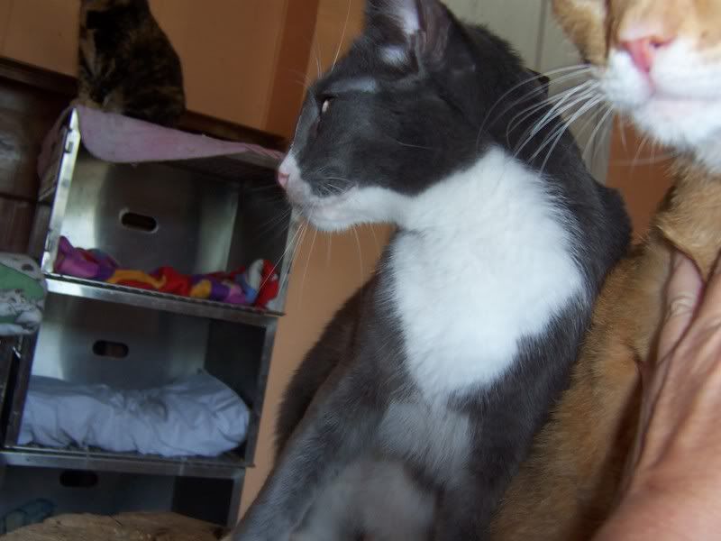 This gray and white one was the first on to jump in my arms both times I visited them. He didn't want to get down.