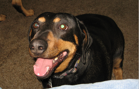 Trixie is about 6 years old. She's a spayed, UTD, half GSD/half Rottweiler. She is currently on Rimadyl. She weighs approximately 120 lbs.